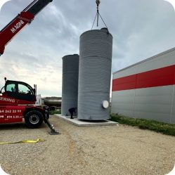 • Montaj la suprafață – rezervoarele verticale se instalează deasupra solului și nu necesită săpături, ceea ce reduce considerabil timpul și costurile de montaj. Sunt ideale pentru curți, terenuri agricole, ferme și spații industriale. Instalarea este rapidă și simplă, nefiind necesare pregătiri complexe ale terenului.